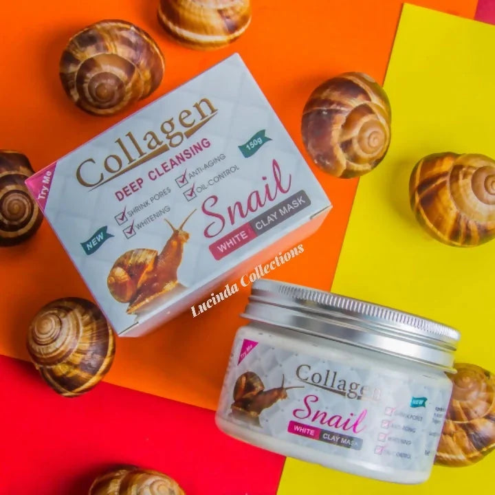 - The set includes a collagen snail face serum for anti-aging and hydration, a purifying clay mask to cleanse and tighten pores, and a whitening cream to brighten and even out skin tone.
