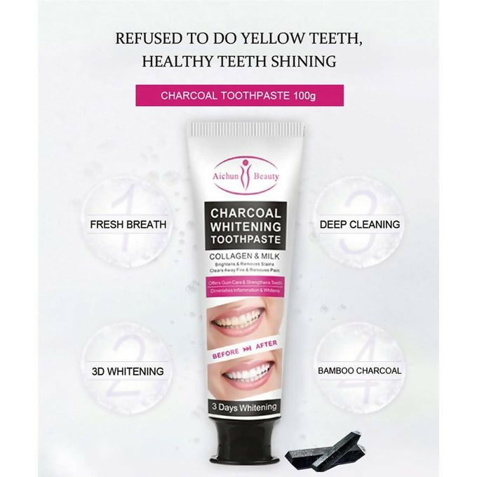 - Aichun Beauty Charcoal 3Days Whitening Toothpaste harnesses the power of activated charcoal to deeply clean and whiten your teeth.