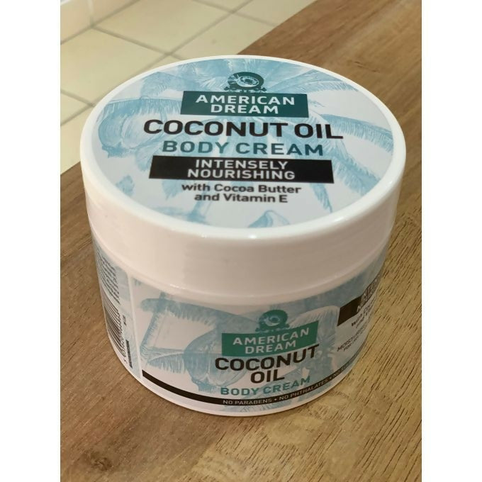 - American Dream Coconut Oil Body Cream is formulated with rich coconut oil to deeply hydrate and nourish the skin.