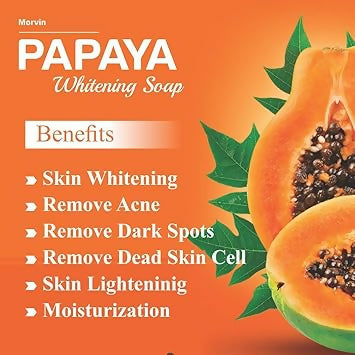 - Enriched with papaya and honey extracts, this soap effectively lightens and brightens the skin, revealing a more radiant complexion.