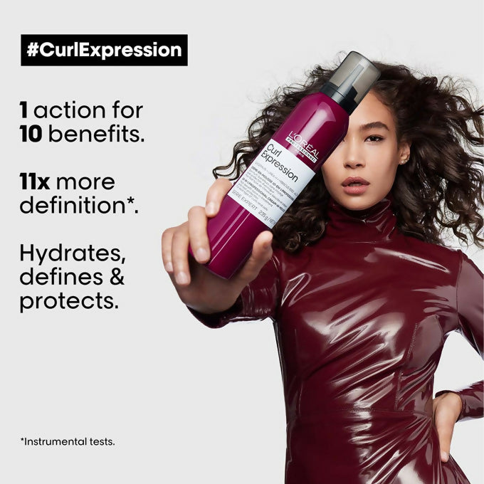 Unleash the power of your curls with L’Oréal Professionnel Curl Expression Cream-In-mousse! This innovative, 10-in-1 leave-in styler offers a multi-benefit solution for curly and coyly hair. It defines curls, provides long-lasting hold, and delivers deep hydration, all without the stiffness or crunch often associated with traditional styling products.