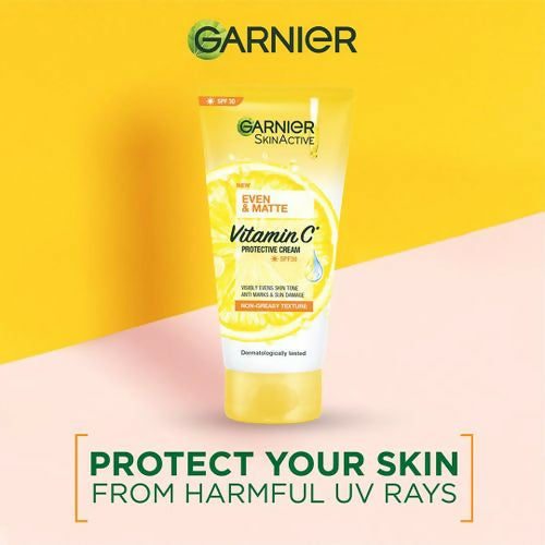 - Garnier Even Matte Vitamin C Protective Cream SPF: It brightens dark spots with Vitamin C, keeps you shine-free with mattifying agents, and shields your skin from sun damage with SPF 30 protection. It’s a one-stop shop for a brighter, less oily, and sun-safe complexion.