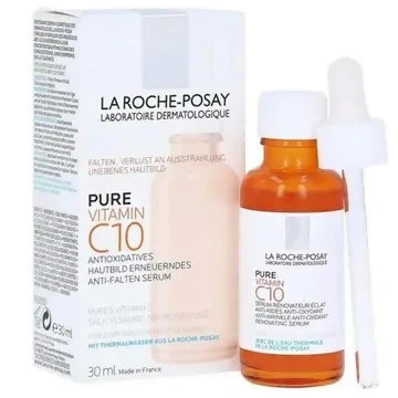 - La Roche-Posay Pure Vitamin C10 Serum is formulated with 10% pure Vitamin C to provide powerful antioxidant protection and visibly reduce the appearance of wrinkles and fine lines.